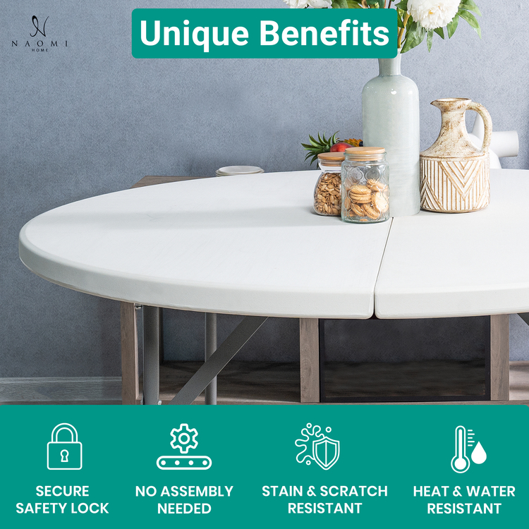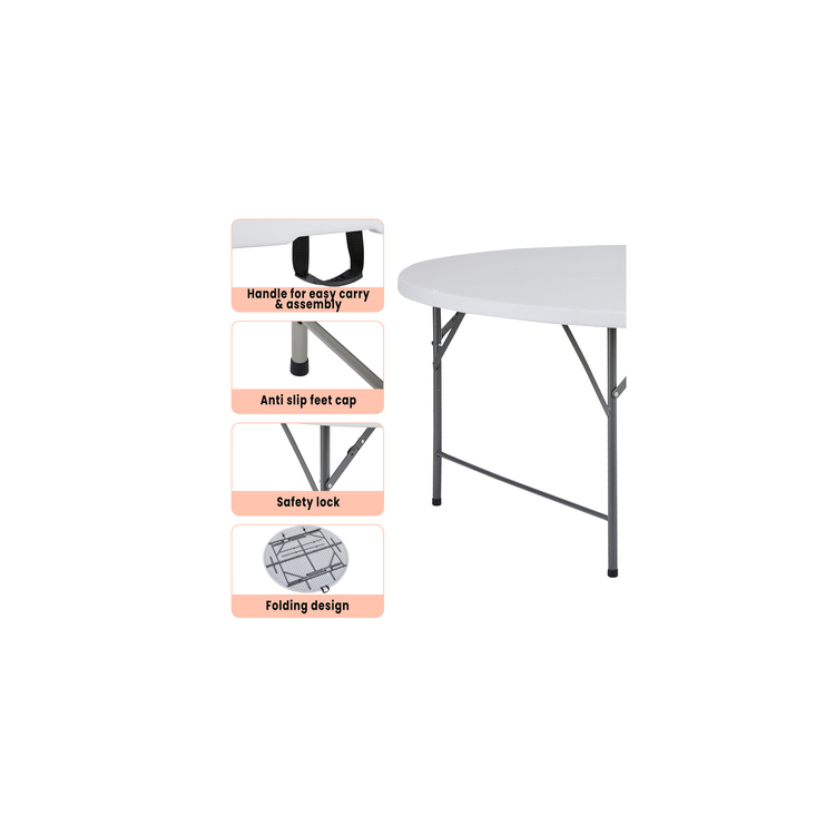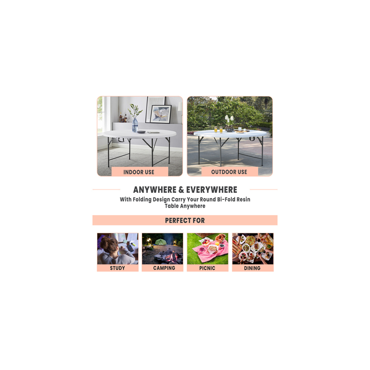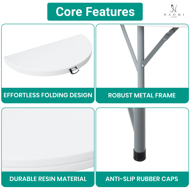 - Experience durability and convenience:The strong, easy-to-clean tabletop, made from high-quality plastic, supports up to 330 lbs and features a heat-resistant, waterproof design with a powder-coated steel frame.