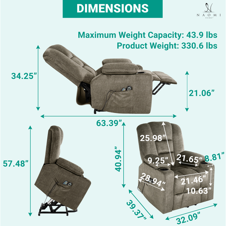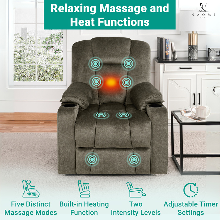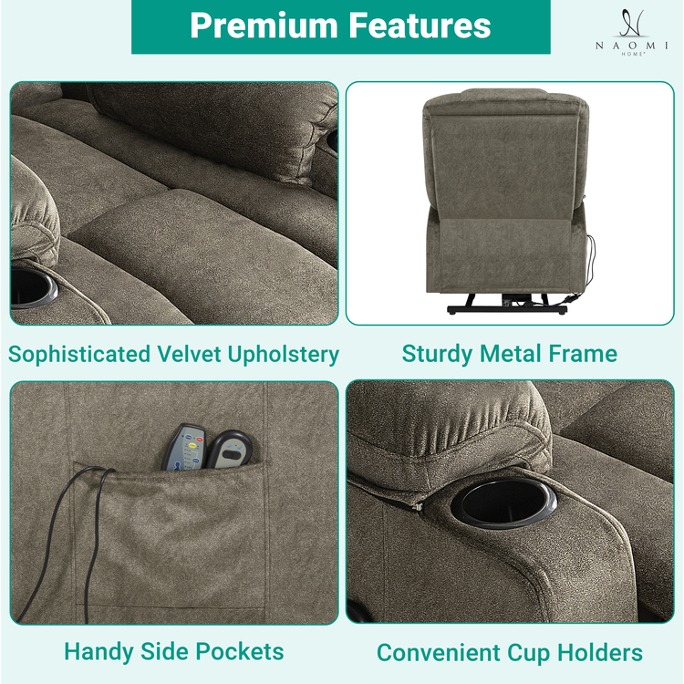 Naomi Home Doris Plush Power Lift Chair Recliner With Massage And Heat