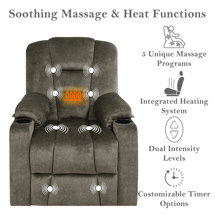 - Full-Body Relaxation Whether you're unwinding after a long day or easing body tension, this chair delivers soothing comfort. Eight vibrating massage nodes target key pressure points, while the lumbar heating function provides gentle warmth to relax sore muscles and improve circulation. Choose from three massage modes to suit your needs.