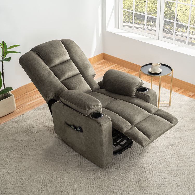 - Everything Within Reach No more reaching or getting up unnecessarily. Two spacious side pockets keep your remote, books, and other essentials handy, while a built-in cup holder lets you enjoy your favorite drink without worry.