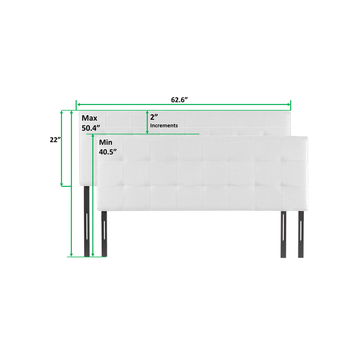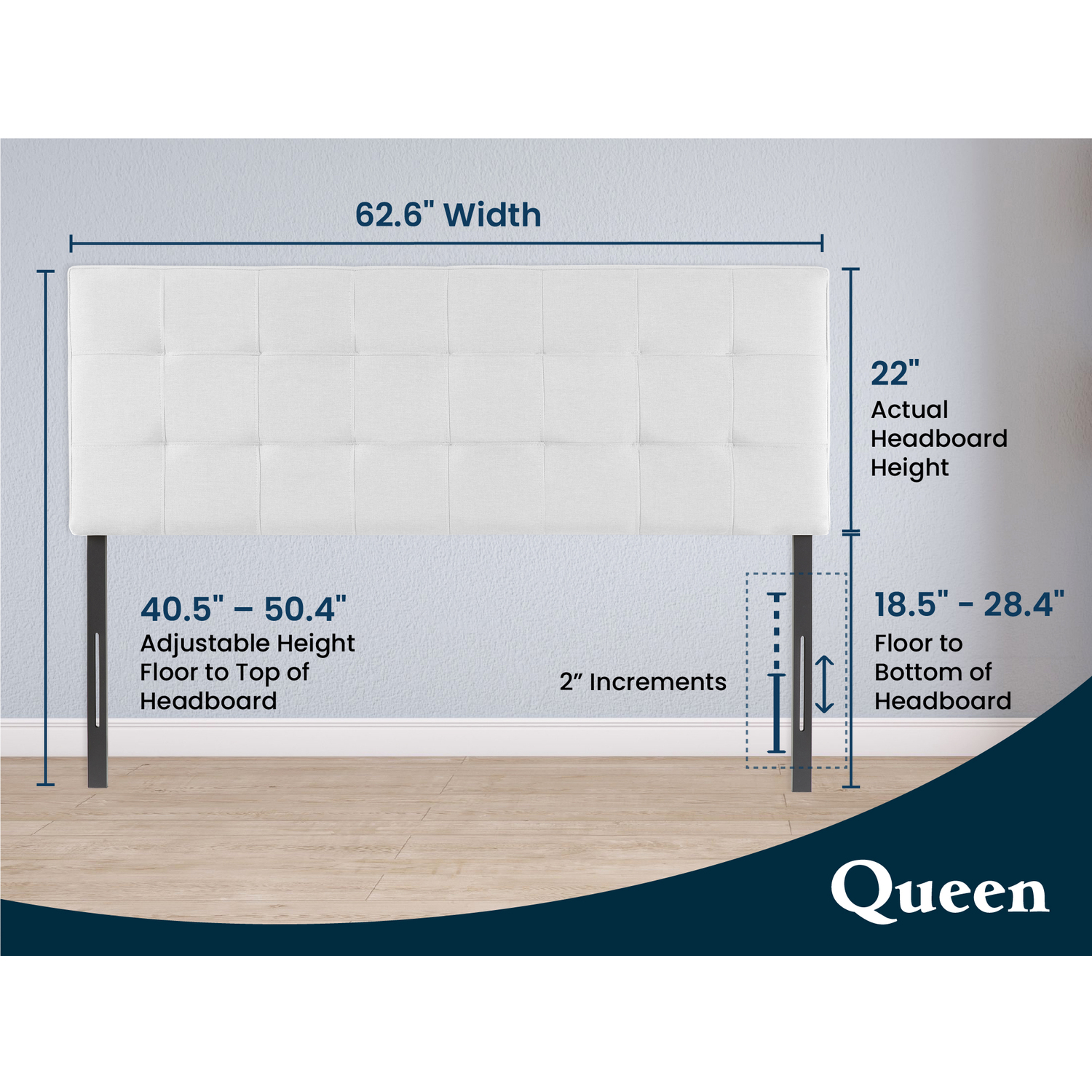 - ADJUSTABLE QUEEN HEADBOARDS: Naomi headboard is ideal for queen size beds. Our tufted headboard queen size can be adjusted to any height between 40.5" - 50.4"with its study metal legs.