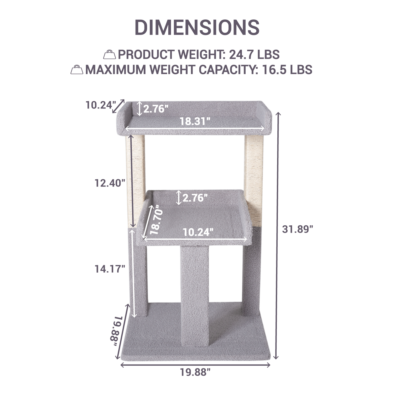 - SAFE AND STABLE: Each level of this cat tower can hold up to 50lbs, allowing two cats to play simultaneously. The 20-inch square base ensures stability during your cat's wild play sessions.