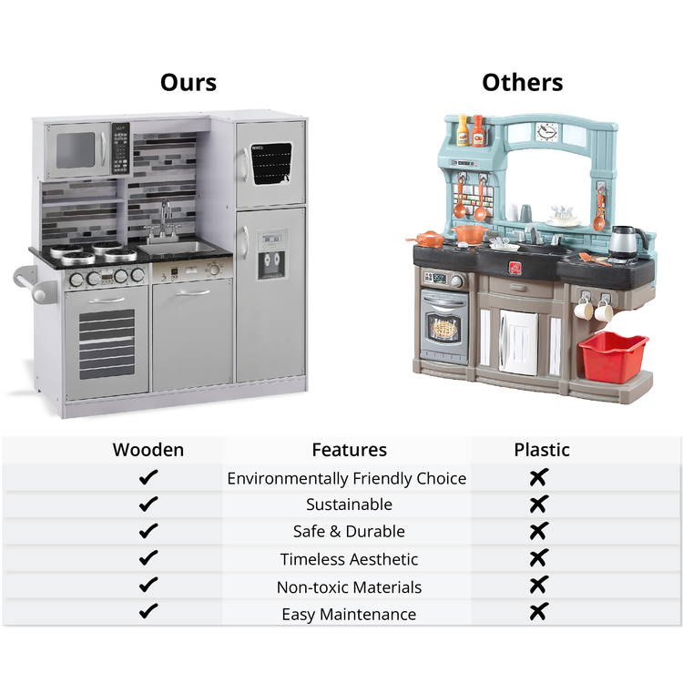 - EASY TO ASSEMBLE:Realistic Play Kitchen comes in a Super Extensive Design. This Playset is Fast and Easy to Assemble with All Instructions Included. Our Proprietary Packaging ensures the safe delivery of the toy kitchen playset to your home. It comes with a 90 Day Manufacturer's Warranty and, in the unlikely event that you are not satisfied with our Play Kitchen, you can contact our customer service for return/refund.