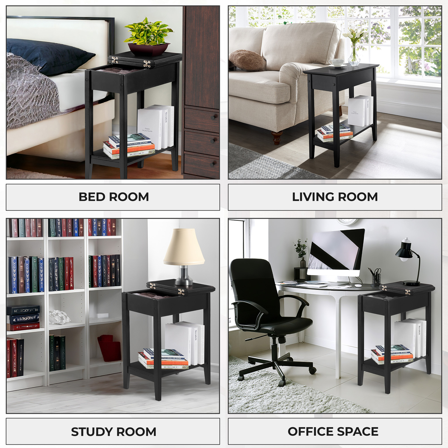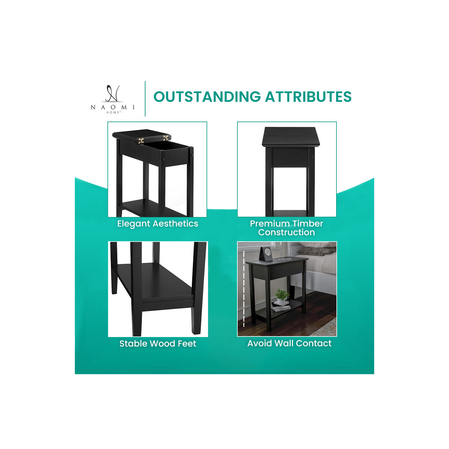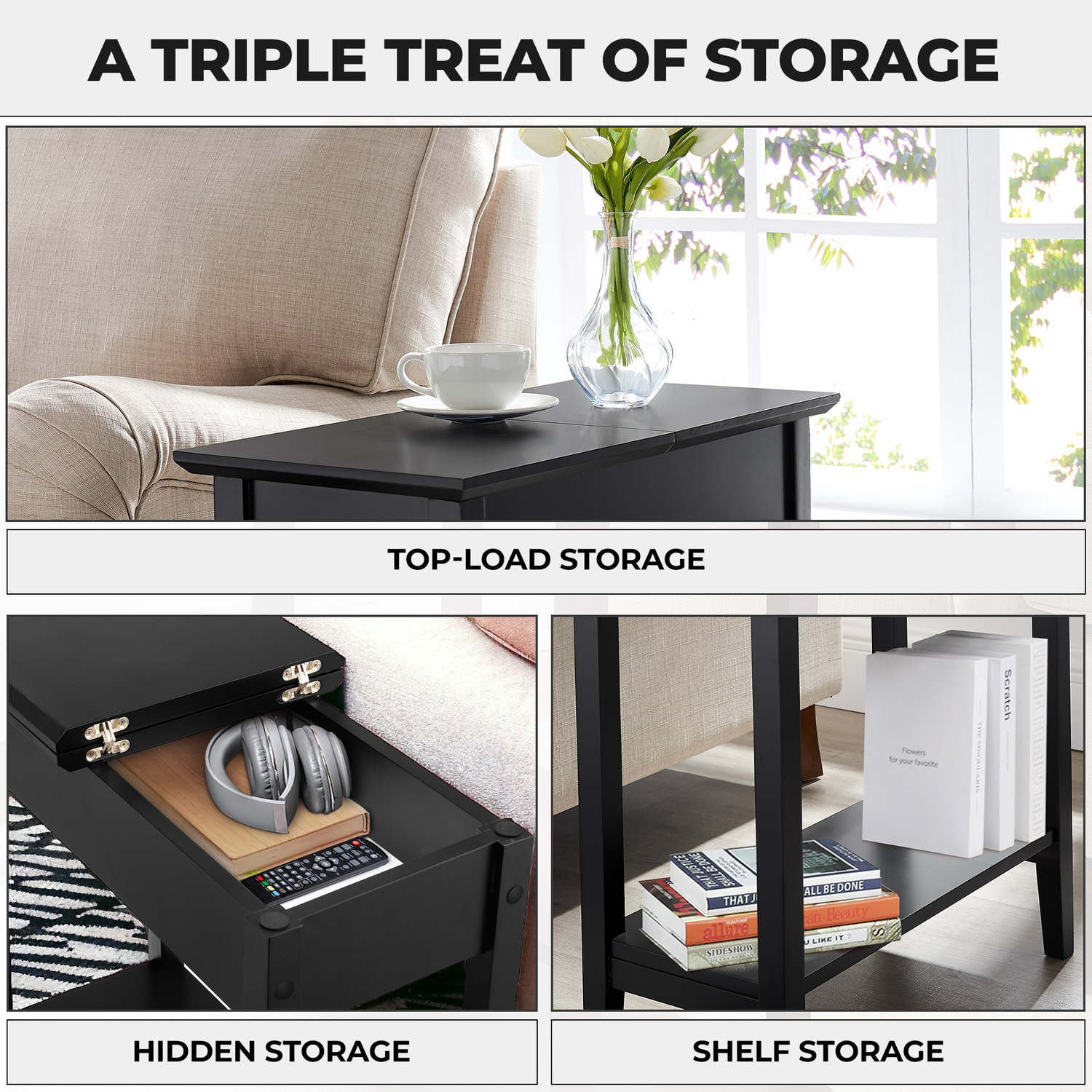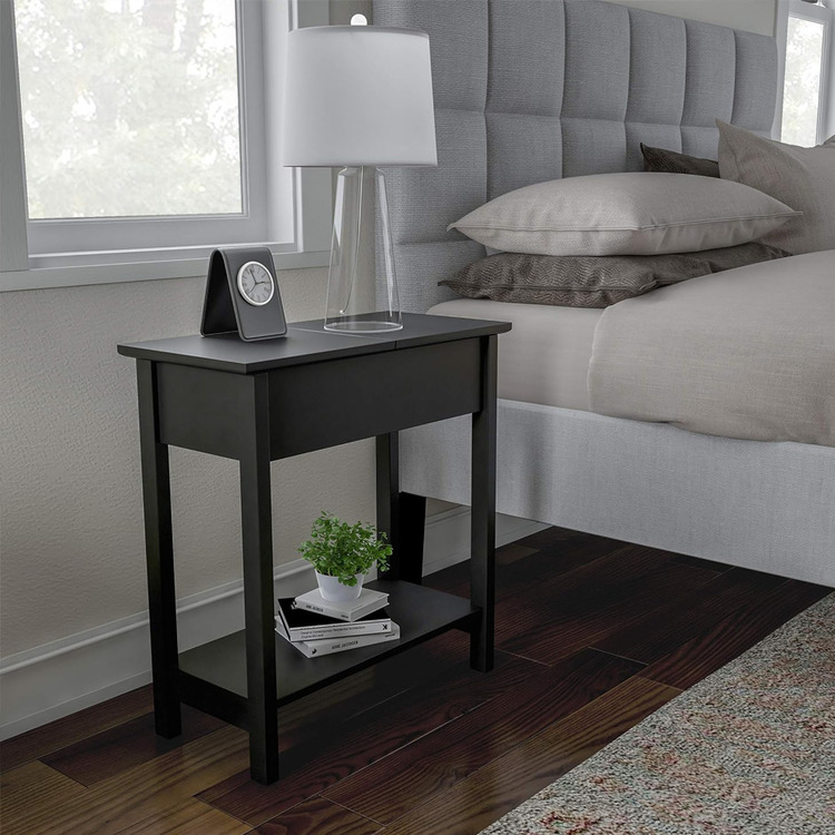 - Effortless Organization with Flip Top Storage-Conveniently organize essentials like remote controls, glasses, books, or magazines in the Roxy Narrow End Table's flip-top storage unit, ensuring a clutter-free and tidy living space.
