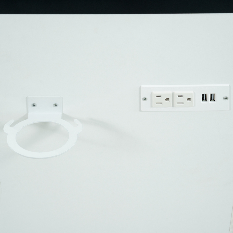 - Built-In Charging & Hair Tool Station-Equipped with two power outlets and a USB port, this vanity ensures your phone, curling iron, or hair straightener is always ready to use. A built-in side hair dryer holder adds another layer of convenience, keeping tools neatly stored but easily accessible.